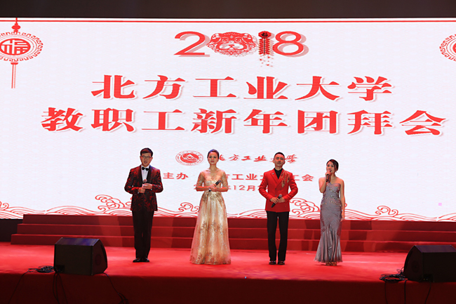 学校各分工会及文体协会分别为团拜会带来了精彩节目,大合唱、配乐诗朗诵、民族歌舞、歌曲串烧、歌舞情景剧等节目异彩纷呈。团拜会现场歌声悠扬,舞姿蹁跹,欢歌笑语,热闹非凡。理学院的《歌唱祖国》、建筑与艺术学院的《天耀中华》、电子信息工程学院的《不忘初心》大合唱、土木工程学院的《我爱你,中国》小合唱歌声嘹亮、气势恢宏,展现着北方工大人凝心聚力团结向上的精神风貌。电气与控制工程学院的诗朗诵《放飞中国梦》厚重磅礴、深情饱满,尤其是朗诵结束后由永利官网学生制造出的机器人拉出“不忘初心,牢记使命——祝全体教职工新年快乐”的横幅,引来全场喝彩。后勤处的《向往》集演唱、舞蹈、情景表演于一体,新颖独特,全面展示了永利官网后勤职工的精神风貌,将团拜会推向高潮。机关的歌曲联唱《歌声嘹亮》、经济管理学院的歌舞情景剧《欢跳吧,年轻的朋友》、马克思主义学院的《新时代 新马院》节奏轻快、活泼向上。计算机学院的歌伴舞《草原儿女》独具民族特色,机械与材料工程学院的合唱《明天会更好》以独舞开场,令人眼前一亮。