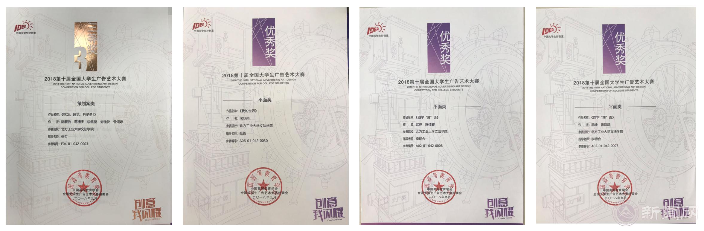 11月24日,第十届全国大学生广告艺术大赛全国赛区颁奖典礼在全国政协礼堂隆重举行,永利官网文法学院广告学专业学生在该项比赛中再创佳绩,荣获第十届大广赛全国赛区三等奖1项,全国赛区优秀奖3项。以及北京赛区一等奖1项、二等奖5项、三等奖5项、优秀奖12项、最佳组织奖1项、最佳指导教师1项。