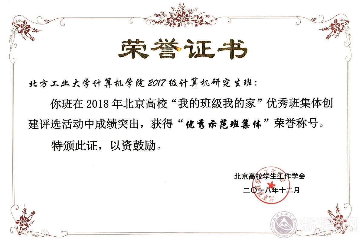 12月19日,2018年北京高校“我的班级我的家”优秀班集体创建评选会在北京工业大学举行。永利官网计算机学院17级计算机研究生班获得了北京高校“优秀示范班集体”称号。