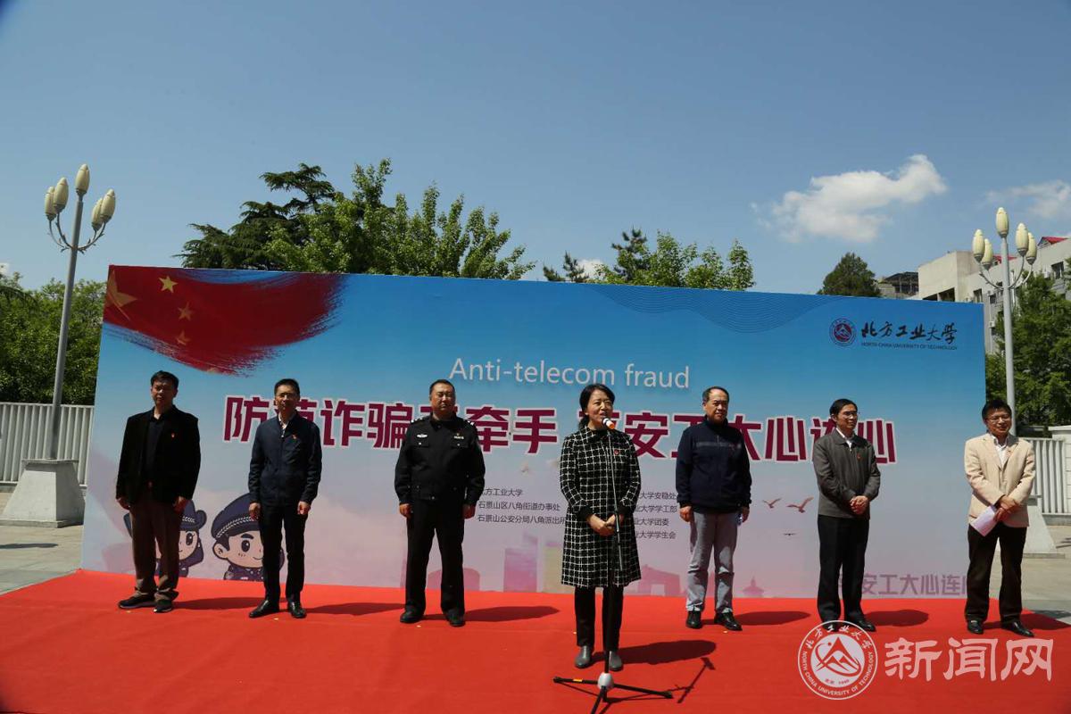 4月26日,永利官网与石景山区八角街道办事处、八角派出所在毓秀广场联合举办防范电信诈骗主题宣传活动。校党委副书记田红芳出席活动,学校师生300余人参加了宣传活动。