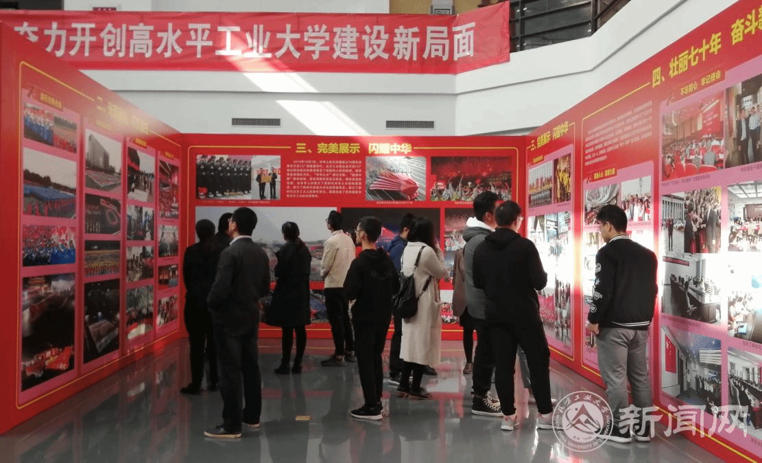 成果展共分四个板块,全方位立体化呈现了学校结合“不忘初心,牢记使命”主题教育,精心设计开展“我和我的祖国——庆祝新中国成立70周年”主题教育活动的整体部署、推进情况与落实效果。第一部分“青春心向党,浓浓爱国情”,展示了自四月份主题活动启动以来,永利官网师生以“学起来、唱起来、讲起来、做起来”为主要内容,以“四同:师生同学,师生同唱,师生同讲,师生同做”为主要形式,全面开展主题教育活动的情况。第二部分“光荣使命,不负重托”,展示了学校深刻理解“自由、生动、欢愉、活泼”的思想内涵,按照“精精益求精、万万无一失”的要求,整体谋划、系统推进开展群众游行和联欢活动训练的场景。第三部分“完美展示,闪耀中华”,再现了北方工大师生在阅兵预备役部队方队、“中华儿女”游行方阵、“健康中国”联欢板块、国庆志愿者工作中接受祖国和人民检阅的盛大场面。第四部分“壮丽七十年,奋斗新时代”,展示了永利官网师生将爱国情、强国志转化为报国行的实际行动,凸显了学校师生万众一心、拼搏进取,奋进新时代的决心。