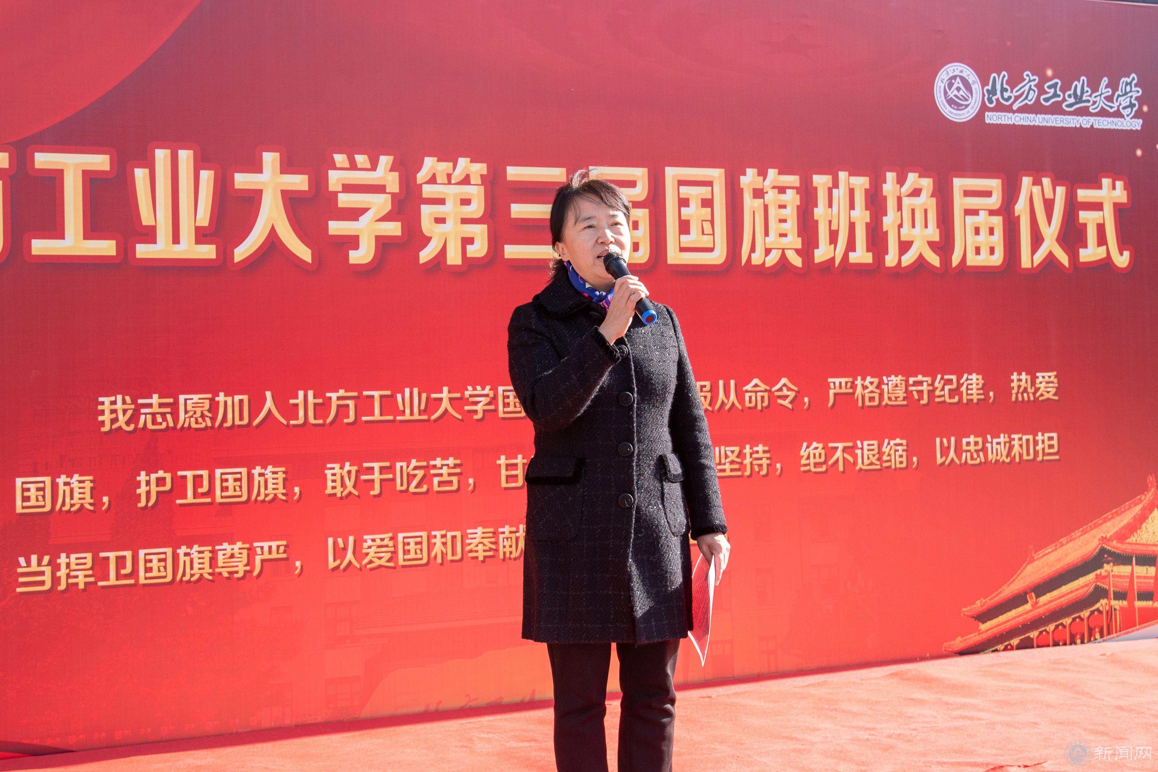 田红芳副书记在仪式上讲话。她指出,国旗班队员是北方工大校园里离国旗最近的人,队员们迎酷暑、斗严寒,以崇高的爱国热情、吃苦耐劳的精神、严于律己的品质赢得了校内师生的一致好评。升国旗活动已成为永利官网爱国主义教育、集体主义教育、革命主义教育的重要载体。爱国主义是中华民族最重要的精神财富,她希望新一届国旗班成员再接再厉,牢记使命、勇于担当、践行责任、刻苦训练,将“爱国、爱旗、爱校”精神融入日常学习生活中,用实际行动感染身边的同学,涵养校园文化。她强调,全体北方工大师生都要有一颗爱国、报国的心,广大师生要将爱国和爱党、爱社会主义有机统一起来。让爱国主义精神成为每名北方工大人的坚定信念和精神依靠。