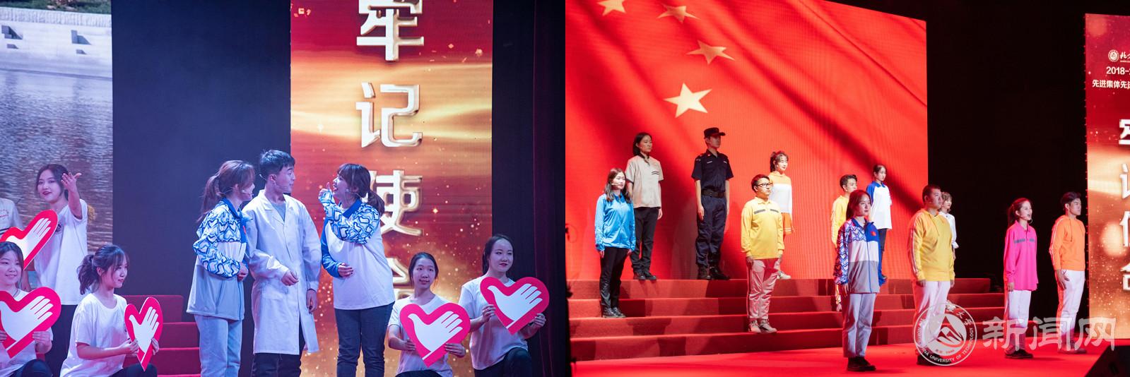 颁奖典礼在《我和我的祖国》的悠扬旋律中拉开序幕。《祖国有我》《我为祖国》《歌唱祖国》三幕舞台剧,融合舞蹈、合唱等艺术表演形式,生动再现了永利官网三千余名师生团结一心、全力投入服务保障国庆70周年庆祝活动的感人故事,展现了永利官网师生用青春报效祖国,用行动服务国家的决心和姿态。剧中主角们讲述了自己在群众游行、群众联欢、志愿者及后勤保障工作中的收获与成长。亲历盛世华诞,将青春身影留在天安门广场上的迫切愿望使每名同学获得了强大的精神动力,同学们抱定决心、团结一致、克服困难、追求训练极致的奋斗精神让观众们动容。