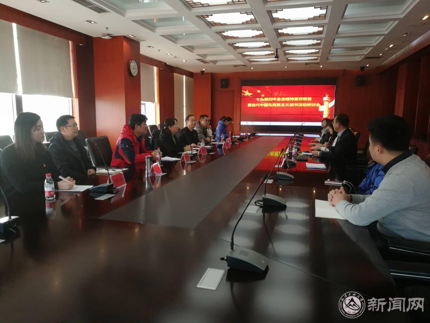 为深入学习贯彻习近平新时代中国特色社会主义思想,贯彻落实党的十九届四中全会精神,推动党的创新理论与经济社会发展有机融合,2019年12月31日下午,校党委副书记田红芳带领马克思主义学院党委一行8人赴北京联东集团,共同举办了党的十九届四中全会精神宣讲暨当代中国马克思主义读书活动研讨会。北京联东集团党委书记张文宇及相关同志共50余人参加了活动。