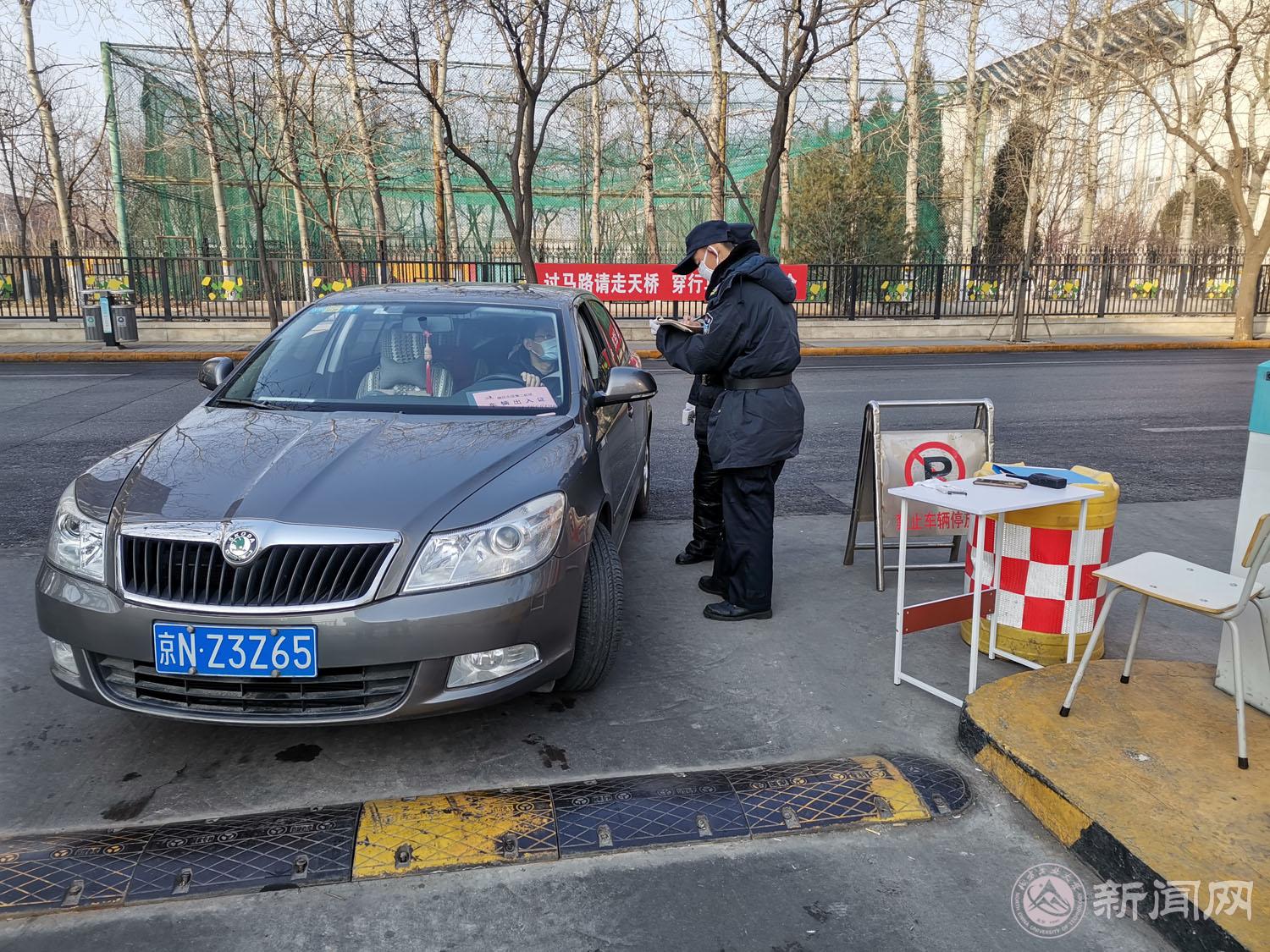学校北门和南门是目前出入校园的仅有通道,也是校警队派出队员最多的地方。校警值守的任务十分辛苦,工作内容也较为繁琐。进入校园的每辆车、每个人都要登记、检查,还要对人员进行情况了解、核验证件、测量体温。按照不断升级的防控要求,离开校园人员也要做好相关记录,工作量直接翻倍。为了把好防控疫情的第一道关卡,在校的40名校警实行三班倒,确保24小时都有人在岗。