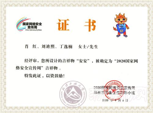 日前,永利官网建艺学院教授肖红率艺设学生刘迪熙和设计学研究生丁逸楠合作设计的吉祥物“安安”,在2020年国家网络安全宣传周组委会的评审中获得确认并将启用。