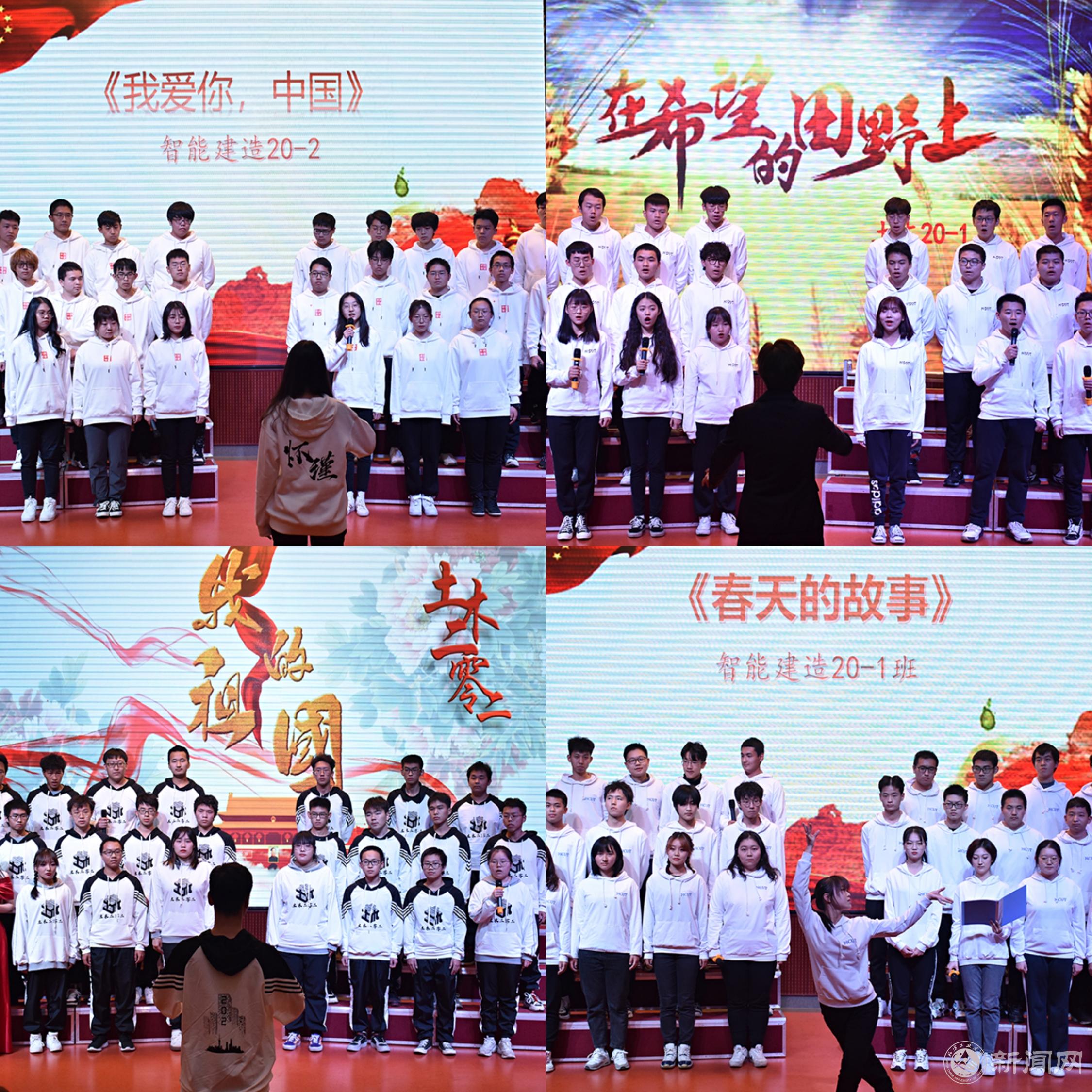 大赛在慷慨雄壮的《没有共产党就没有新中国》歌声中开场,掀起全场的热烈气氛。随后《我的祖国》、《我们走在大路上》、《我爱你中国》、《春天的故事》、《在希望的田野上》、《同一首歌》相继展现了祖国各个历史时期,从站起来到富起来的艰苦奋斗历程,最后《共筑中国梦》、《歌唱祖国》并以《不忘初心》为结尾,将晚会推向高潮,展示了党的十八大以来伟大祖国在政治、经济、文化、基础建设以及抗击疫情等方面取得的辉煌成就。这次比赛也为新同学们上了一堂生动的思想政治教育课程。高昂的士气、嘹亮的歌声、统一的服装,也展现了各班级同学强烈的爱国热情和积极向上的精神面貌,最终土木20-1班荣获一等奖。