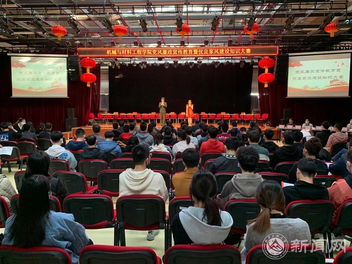 11月12日下午,机械与材料工程学院党风廉政宣传教育暨优良家风建设知识大赛在学生多功能厅举办。全院师生党员、入党积极分子、学生代表近400人一同观看了知识大赛。