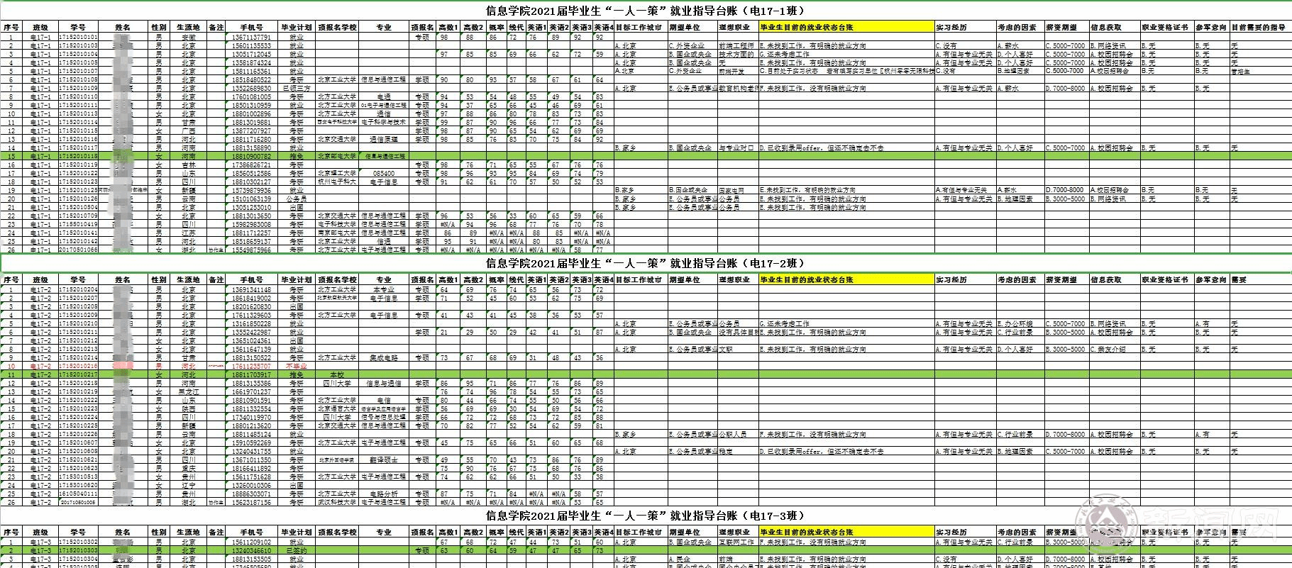 毕业生“一人一策”指导台账