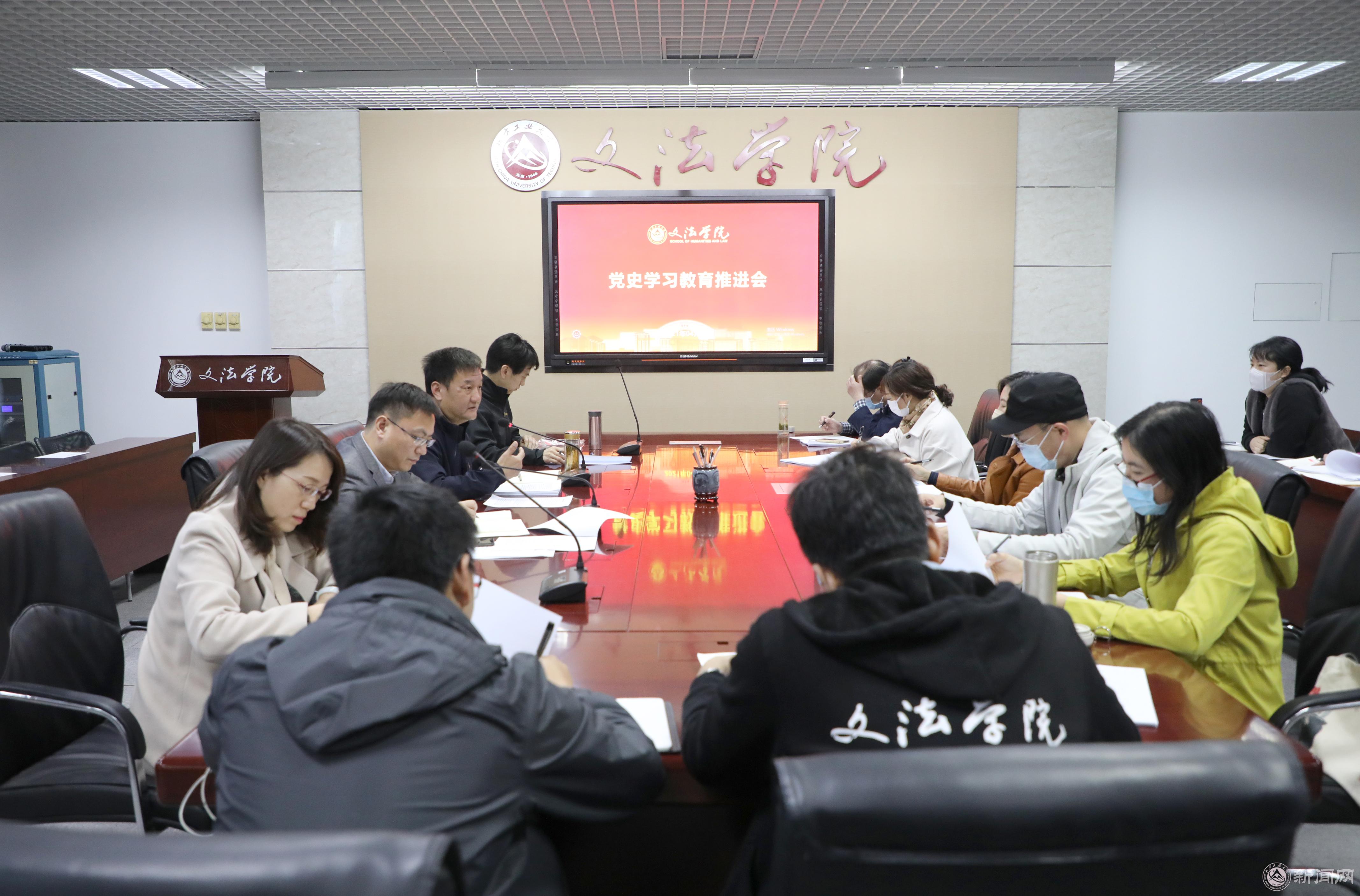 4月14日下午,文法学院在瀚学楼710召开了党史学习教育推进会,学院班子成员、党委委员和党支部书记20余人参加了会议。