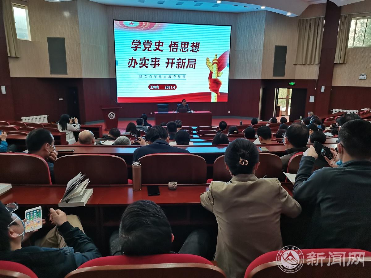 按照学院党史学习教育安排部署,4月25日下午,经济管理学院党委书记王伟宾结合个人学习心得,以“学党史 悟思想 办实事 开新局”为题,在文化会堂为全院教师上了一堂意义深刻的党课。