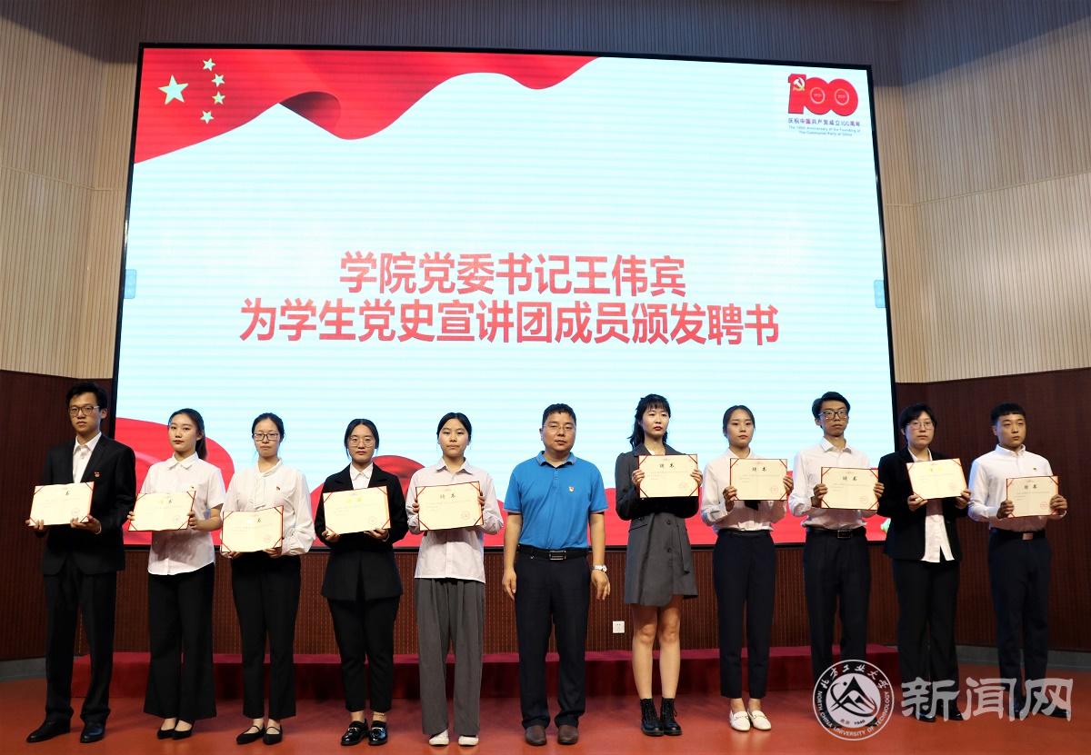 赵洁宣读了《经济管理学院关于成立学生党史宣讲团的决定》。指出“学生党史宣讲团”的成立,是引导青年大学生知史爱党、知史爱国的有力举措。党史宣讲团成员以及广大党员,要充分发挥模范带头作用,带动广大青年学生在党史学习教育中不断总结党史学习教育心得,汲取奋斗力量,坚定理想信念,让青春在实践磨砺中绽放光彩。