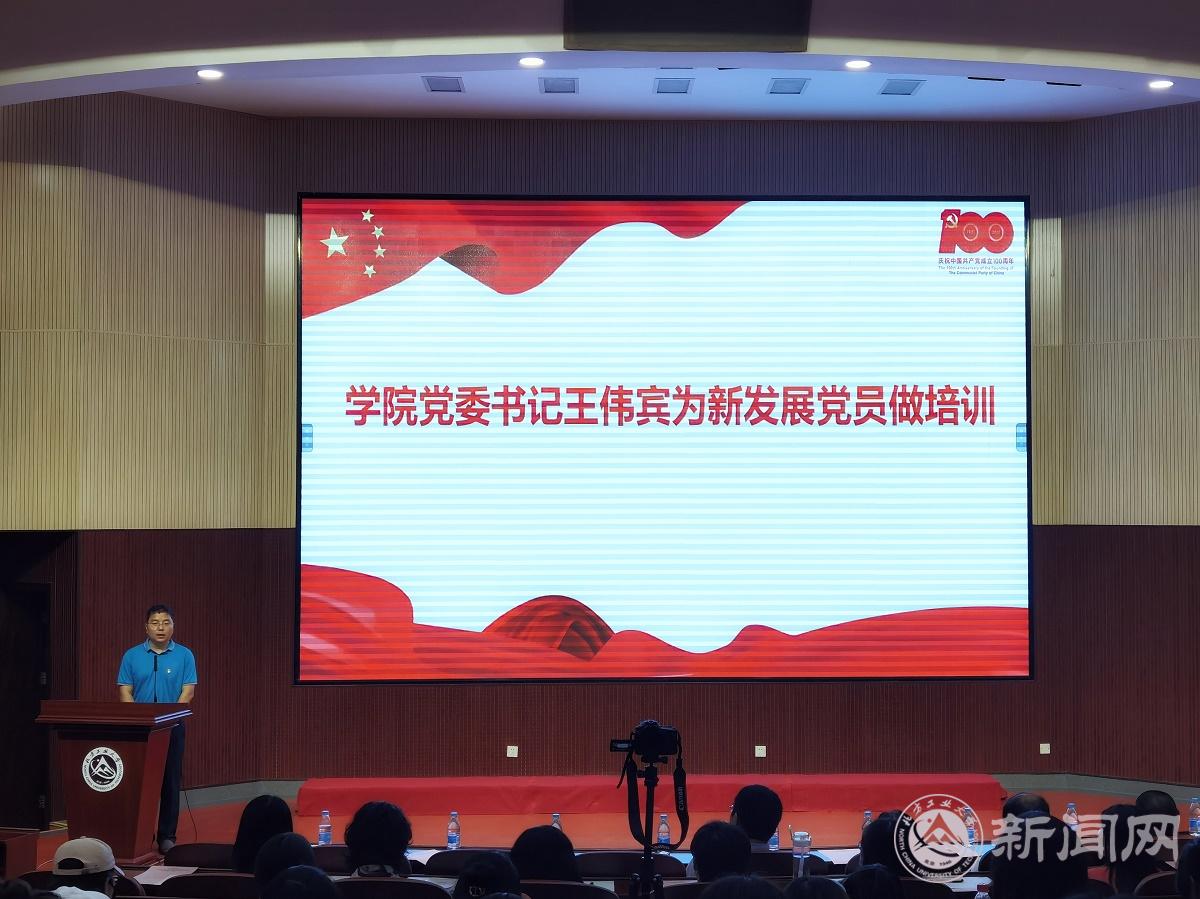 王伟宾书记为学生党史宣讲团成员颁发聘书,并结合习近平总书记在庆祝中国共产党成立100周年“七一勋章”颁授仪式上的重要讲话,为新发展党员做了培训。他强调,站在“两个一百年”奋斗目标的历史交汇点上,同时面对当今世界百年未有之大变局,党史学习教育意义重大,建党百年,是我们学习的新起点,我们要继续不断学习实践中国共产党人坚定信念、践行宗旨、拼搏奉献、廉洁奉公的高尚品质和崇高精神,武装自己,在实践中更好的发挥党员的先进性。新入党的同学要认真学习党史、新中国发展史、改革开放史和社会主义发展史,继续深入了解我们党领导人民进行艰苦卓绝的奋斗历程,从灵魂深处涵养爱党爱国的深厚情怀,真正做到立得住信念、守得住初心使命、经得住风浪考验。