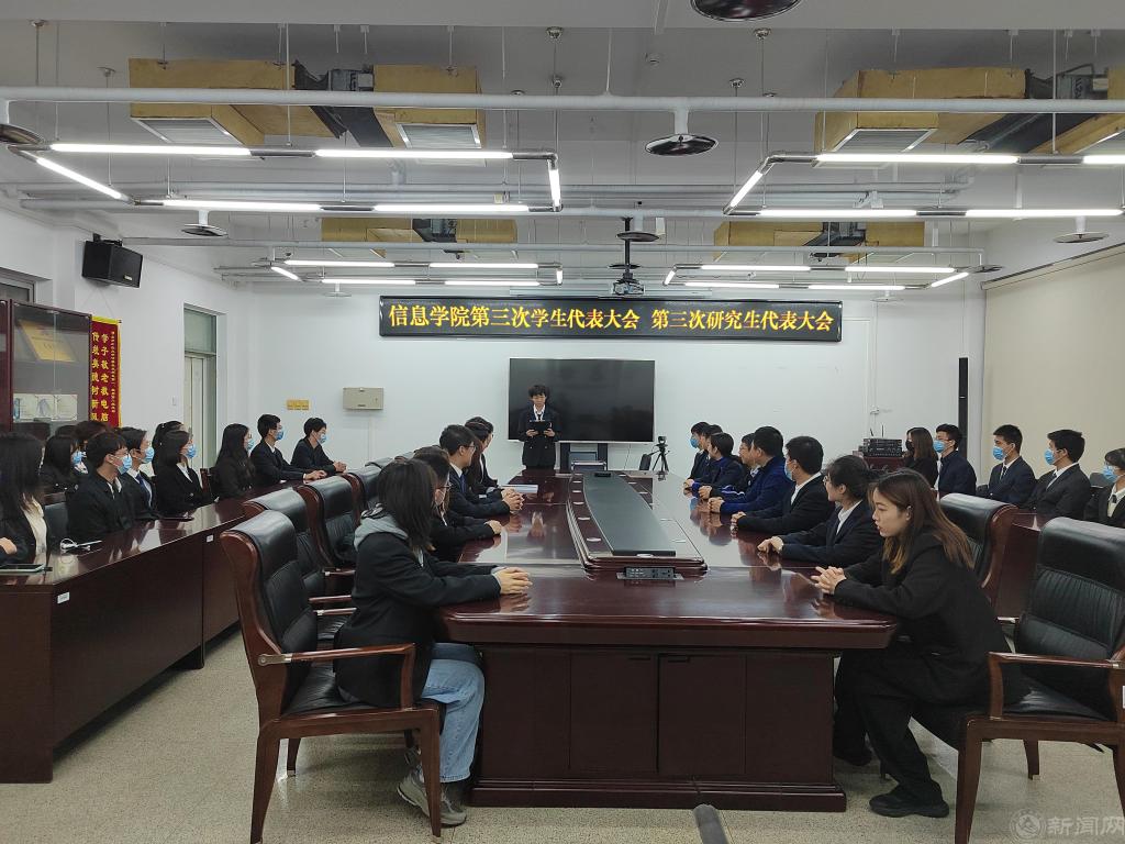 12月22日,信息学院在瀚学楼1014召开信息学院第三次学生代表大会和第三次研究生代表大会。