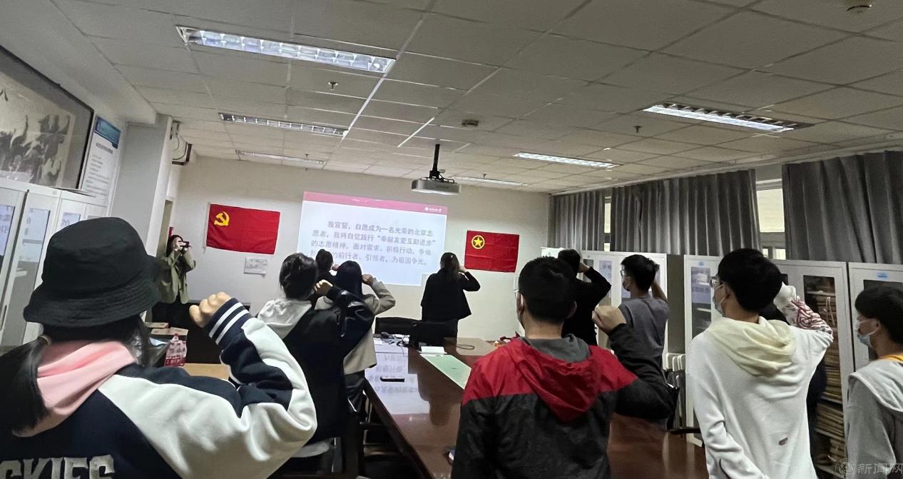 志愿者代表赵梦彤宣读《致机材学院全体疫情防控志愿者的倡议书》并与线上线下各位志愿者共同宣誓,一声声铿锵有力的誓言凝聚着全院疫情防控志愿者青年突击队同学的决心和必胜信念。