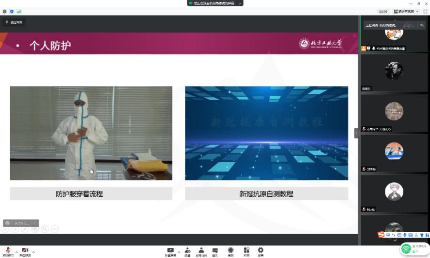 学院团委书记石卉首先对《机材学院疫情封控的应急处置预案》进行了详细解读。着重对前期准备工作进行了说明,同时结合具体事例介绍突发疫情后,全员核检、物资供配、生活服务、教学安排等操作标准与注意事项,并通过视频向志愿者展示了穿、脱防护服、医疗废物处理规范、新冠抗原自测方法等,确保志愿者们协助参与疫情防控工作的同时做好自我防护,保障自身安全,确保疫情防控工作的有效运行。