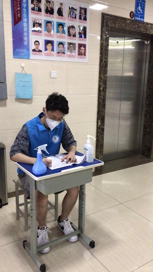 筑牢防疫线,做校园“安全卫士”。疫情就是命令,防控就是责任。在学院党委的领导下,信息学院党委副书记带领辅导员杨和家、史崟妮、吴志庆、孙滔、张雨等入驻学生公寓,与同学们一起战“疫”。他们与学生同吃同住,发起“敲门行动”,每天走访学生宿舍,了解关注学生思想状况,耐心宣讲疫情防控政策,想方设法解决学生的困难。毕业班辅导员杨和家、张雨深入宿舍开展毕业生一对一谈心谈话,缓解毕业就业压力,指导帮助毕业班同学完成毕业设计、顺利就业。作为党员先锋,他们还积极投入到物资保障、核酸检测等服务工作中,在炎热夏日常常湿透衣襟。每天走路2万步起、工作时间长达十四五个小时,是他们的日常写照。