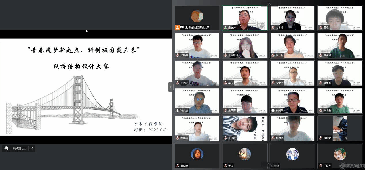 6月2日晚,由土木学院承办的304永利集团官网入口科学节系列活动之“青春筑梦新起点,科创报国赢未来”纸桥结构设计大赛决赛在腾讯会议线上举行。