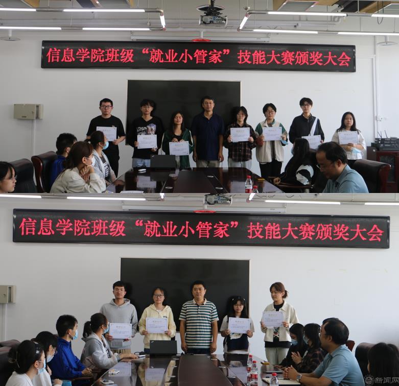 为更进一步提升就业服务水平,锻炼学生骨干队伍,贴心为2023届毕业生提供个性化、面对面服务,信息学院近期组织班级“就业小管家”开展就业服务能力大赛,并于在瀚学楼1014召开总结表彰大会。学校副校长王力、学院副书记陈卫、就业辅导员李伟以及信息学院班级“就业小管家”团队参加本次大会。
