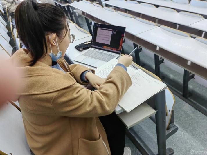 走访宿舍过程中发现有些学生未在宿舍上课,他们还是按照原来的生活习惯,去食堂吃完早餐,在铃声敲响之前踏入教室。计实验班的孙虹飞同学就是如此,她说:“坐在教室里上课,能让自己静心学习。尤其马上就要期末了,来教室上课更有学习氛围。”