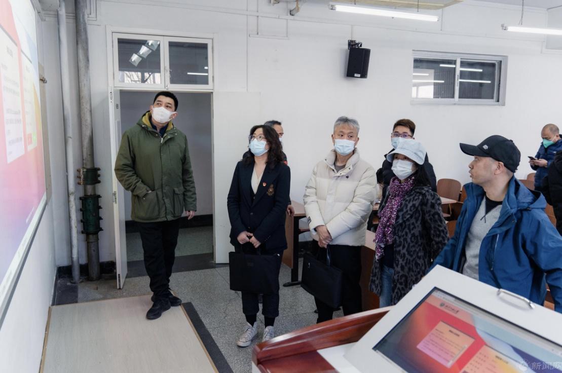 在李敏副主任、网信中心教育技术部负责人王岸飞的引领下,一行人先后前往广学楼、瀚学楼和励学楼教室现场观摩、考察。李敏向来访领导介绍了永利官网最近几年的多媒体教室升级改造项目的相关情况及目前的现状,王岸飞介绍了教室多媒体的系统构成、功能和特点,并进行了演示。
