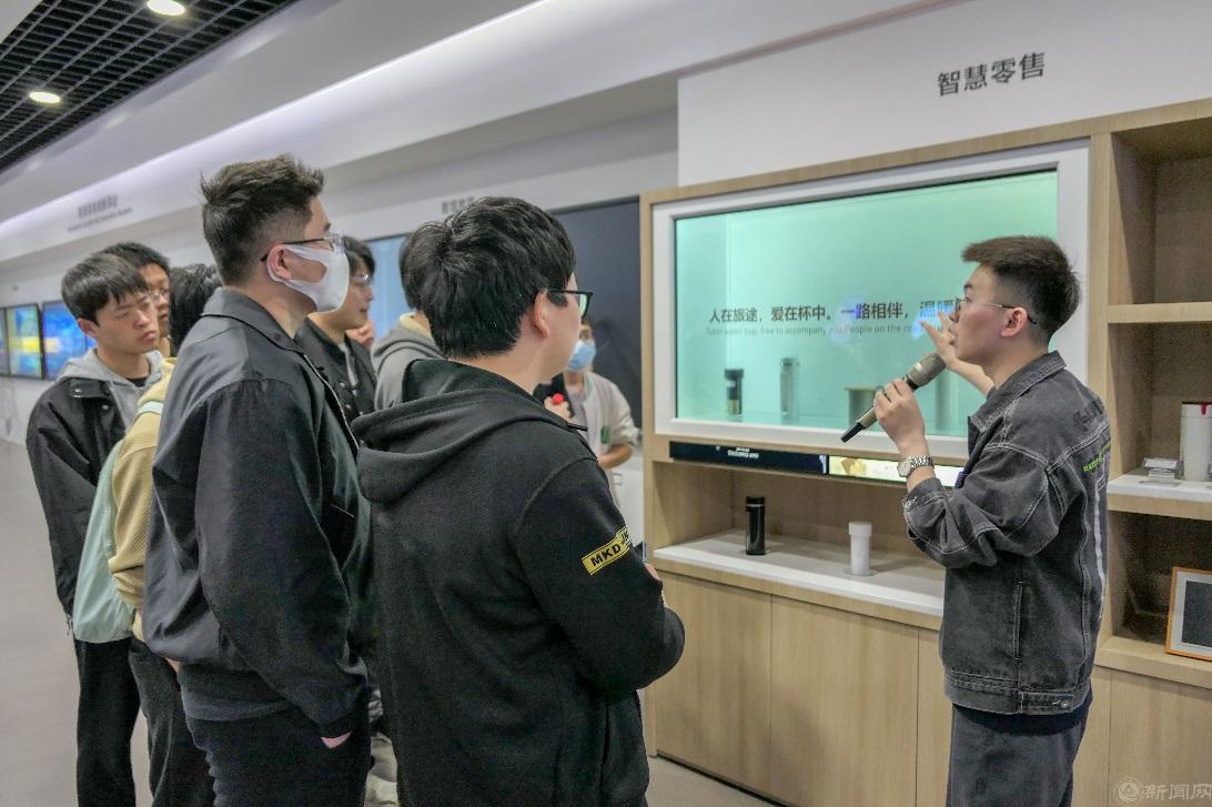 在交流活动中,学院团委书记田儒基与京东方技术创新中心相关负责人就人才培养新路径进行探讨,加强双方毕业生就业、在校生实习等深度合作,学院增加人才输送,企业扩展就业岗位。京东方中心负责人向学院师生介绍展示了其遍布全球20个国家共17条产线,4座智能制造工厂,5所数字医院,传递了“屏之物联、未来如是”的新理念。