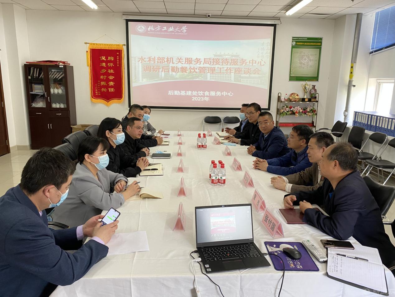 4月18日上午,水利部机关服务局接待服务中心主任喻敏、副主任刘建军一行7人来永利官网饮食服务中心对食堂管理、餐饮服务、设备设施配备等方面的经验做法进行调研。后勤党委书记郑泰平,服务中心总经理张加强,后勤基建处处长白传栋,及后勤基建处副处长杨培鉴参加调研座谈,并陪同参加实地走访。