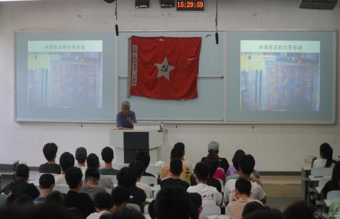 百余年来,中国共产党人为了民族独立、人民解放,为了国家富强、人民幸福,前赴后继、勇往直前,成就了昭如日月的伟业,谱写了震古烁今的史诗。为了将这些珍贵的红色故事讲给更多的人听,“红色故事宣讲”实践团,深入学习党革命历史,积极寻找红色故事的线索和资源,精心筹备,组织开展“红色故事会”。邀请了红军后代授课团成员和中国运载火箭技术研究院退休高级工程师梁宁宁到校开展主题讲座。梁爷爷用铿锵有力的声音向与会两百多名同学描述了红军在面对敌人追捕时的临危不惧,以及面对我方劣势,大部队需要撤离的情况时,留下来断后士兵宁死不屈,宁可纷纷跳崖也不愿落入敌人手中当俘虏的壮举。又讲述了当年的红军战士们是如何与战友们一同跨越崇山峻岭、涉过波涛汹涌的江河。红军将士们经过无数艰难险阻,却依然拥有坚定信念和为民族独立、解放事业奋斗的决心。一段接一段的红色革命故事,是红军战士们勇敢与坚定之精神的证明,深深牵动着同学们的心弦,对革命战士产生敬佩之情。