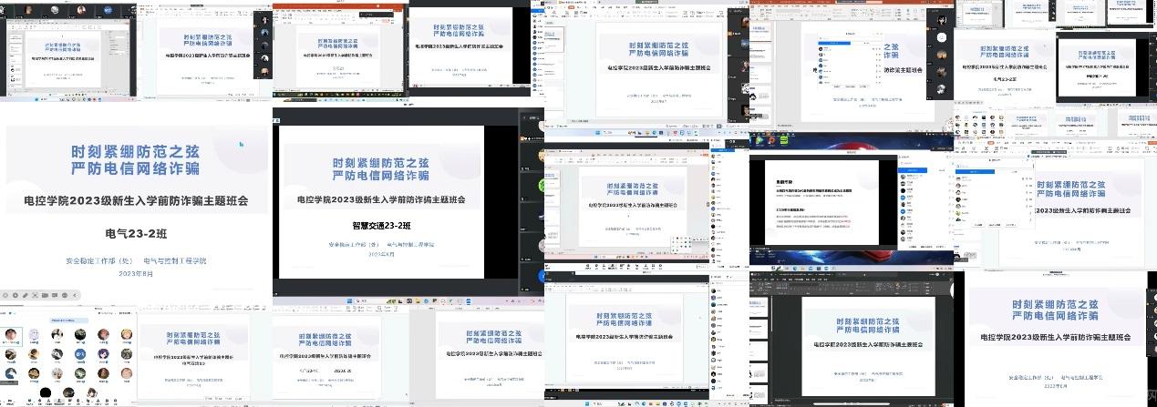 新生入学报到在即,为了保证同学们安全平稳进入大学学习新阶段、上好开学前“防诈骗”第一课,电控学院新生辅导员田儒基、小辅导员组织2023级本科新生以“时刻紧绷防范之弦 严防电信网络诈骗”为主题召开主题线上班会。
