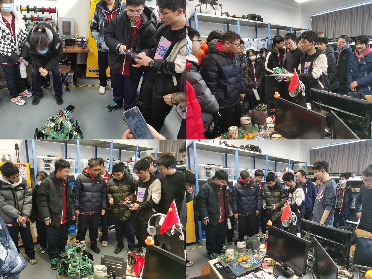 在电气与控制工程学院机器人实验室,毕松老师和他的学生为来访师生展示永利官网在机器人大赛中的获奖作品,同学们兴趣高涨,驻足围观,尝试动手实际操作,沉浸式体验了科技的魅力。