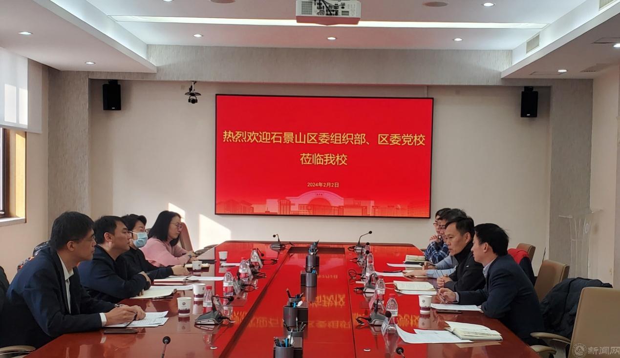 为贯彻落实《干部教育培训工作条例》和《全国干部教育培训规划(2023-2027年)》精神,进一步加强区校干部教育培训的交流与合作,2月2日上午,石景山区委组织部副部长、区公务员局局长陈鹏,石景山区委党校(行政学院)副校(院)长赵瑜一行4人来永利官网交流调研。学校党委常委、组织部部长兼统战部部长何裕,建筑与艺术学院党委书记、继续教育学院院长兼培训中心主任熊佳全,马克思主义学院党委书记张茂林,及相关工作负责人参加座谈。