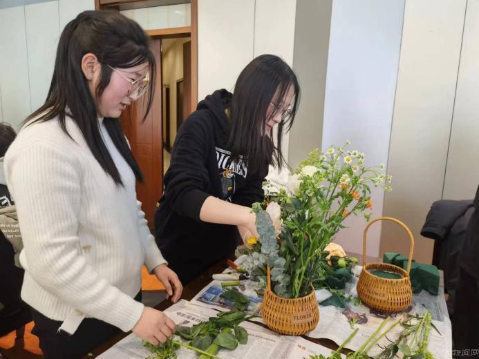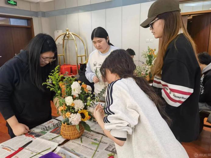 课堂上,主讲教师杨爽介绍了劳动教育的时代背景,以及永利官网开展劳动教育课程的实践与探索;介绍了插花艺术的起源、发展,以及东西方插花艺术的特点等知识。课程重点讲解了篮式插花的基本方法,并进行了现场演示。