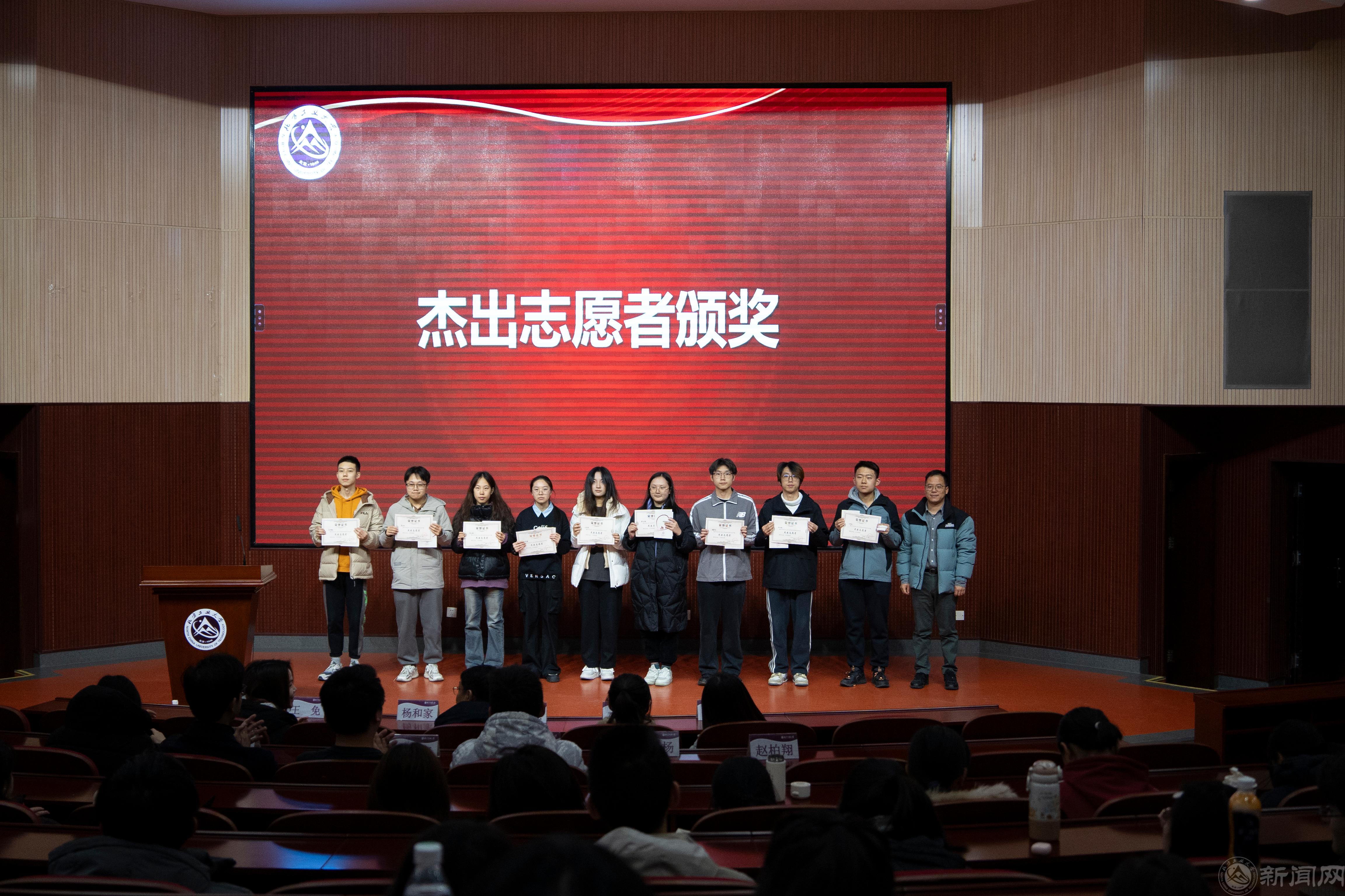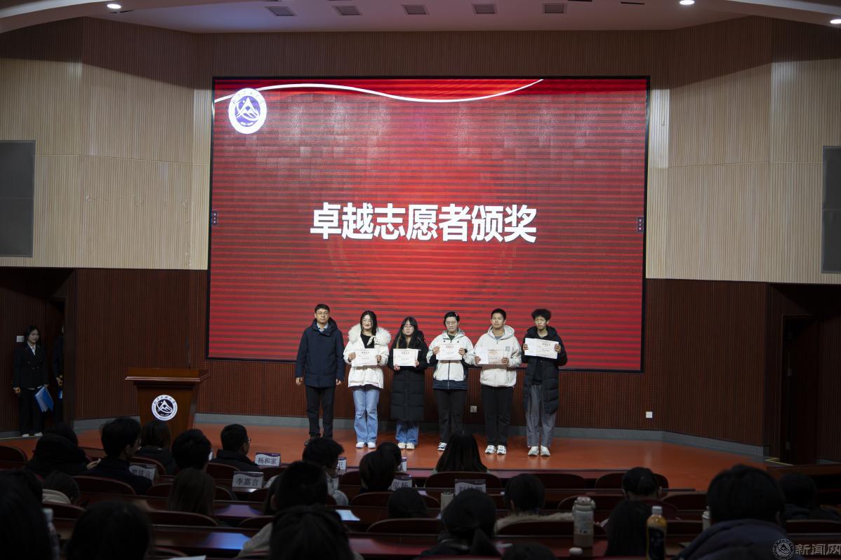 学院党委副书记陈卫老师、团委书记杨和家等领导嘉宾分别为2024年度表现突出的志愿者以及优秀社会实践团队进行了隆重颁奖表彰,以肯定和奖励他们在过去一年中的优秀表现。他们在志愿服务中敢为人先,促进团队交流交融,始终以优秀的个人素养认真负责的做好每一项志愿服务,充分发挥了榜样作用。