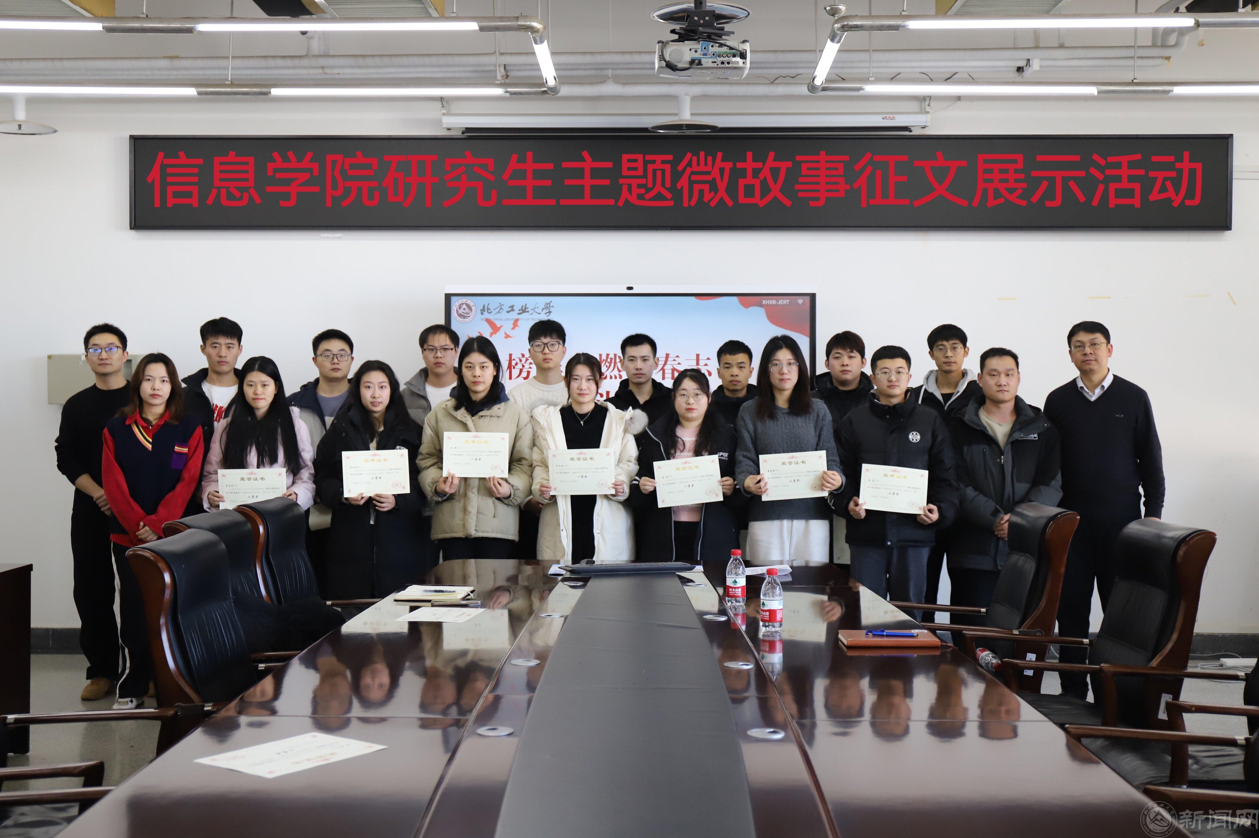 为传承榜样精神,激励广大研究生在新时代背景下学习榜样、争做榜样,信息学院开展以“榜样点燃青春志 奋斗谱写新篇章”为主题的研究生微故事征集活动。12月18日,研究生微故事征集展示活动在瀚学楼1014举行,学院党委副书记陈卫、研究生辅导员王免出席本次活动并为获奖同学颁奖。