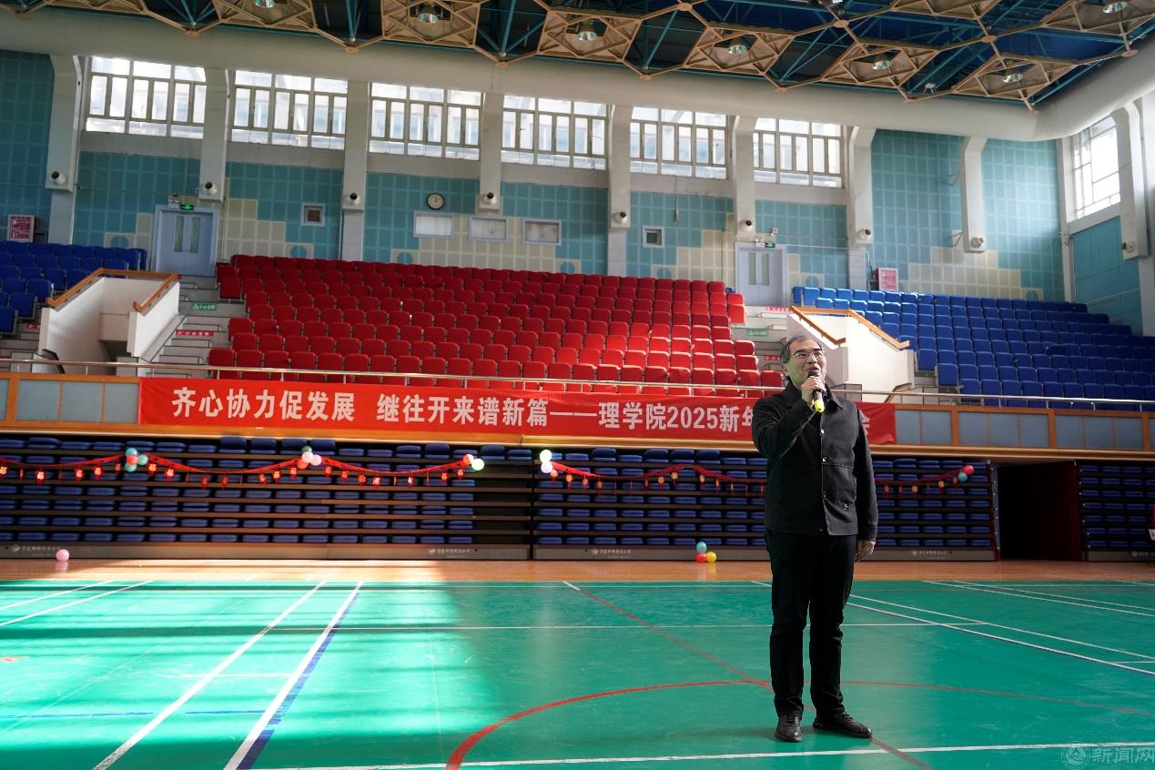 时序更替迎佳节,万象更新展未来。12月26日中午,理学院举行2025新年教工联欢会。学院班子成员和教职工近70人欢聚体育馆二层,共迎2025新年的到来。