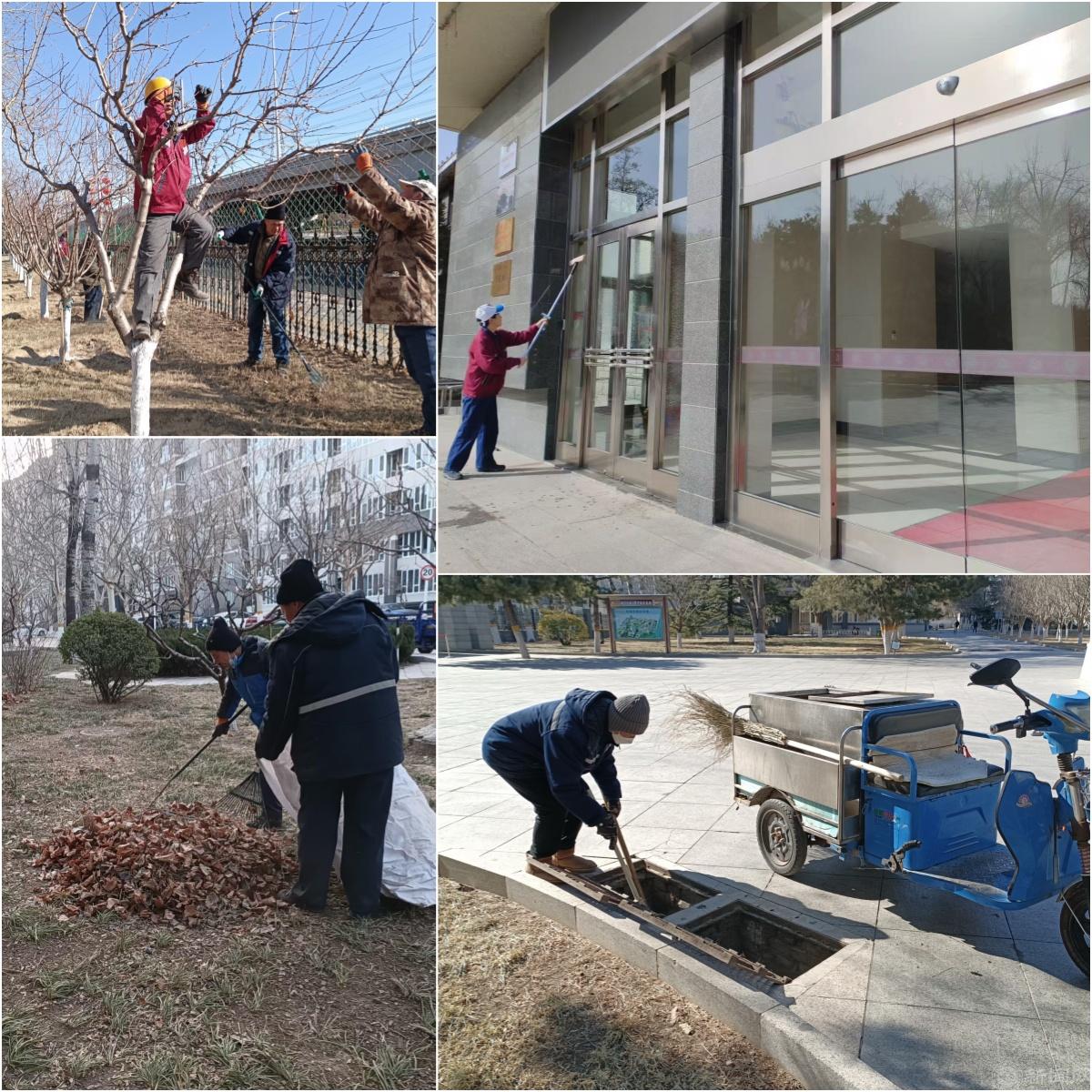 绿化环卫服务部协同学生公寓配合后勤基建处完成教学楼、宿舍门窗更换;对楼宇内公共区域进行全面清扫,重点部位用洗地机进行深度清洗;对校园道路、广场、宣传栏、指路牌、长条椅、果皮箱、马路污迹等部位进行冲洗擦拭;对道路雨篦子进行细致的清理;清扫草坪及绿篱内落叶30000余平米,清理树坑260余个,修剪整形树木300余棵。