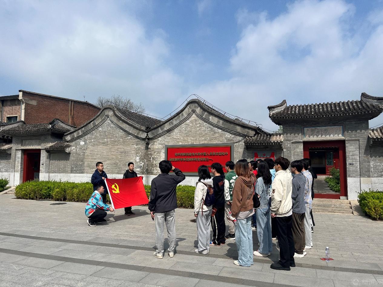 在平津战役指挥部宋庄旧址内,平津战役陈列展历史内容详实、展陈形式新颖,具有较强的历史感染力和视觉冲击力。大量珍贵的革命文物、微缩模型、文献资料和历史照片,真实、直观、生动地阐述了平津战役指挥部迁入宋庄村的那段红色历史。青年党员们跟随讲解员的生动讲述,依次参观展厅中陈列的作战文书、历史照片与珍贵实物,深入了解前线总前委在此筹划天津战役、促成北平和平解放的重要历程,追忆那段“决战华北、和平解放北平”的峥嵘岁月,切身感悟共产党人“运筹帷幄、决胜千里”的革命智慧与坚定信念。在革命教育广场,师生党员们面向鲜红的党旗庄严宣誓,重温入党誓词,“青年先锋、强国有我”的铿锵有力的誓言在革命旧址上空久久回荡。