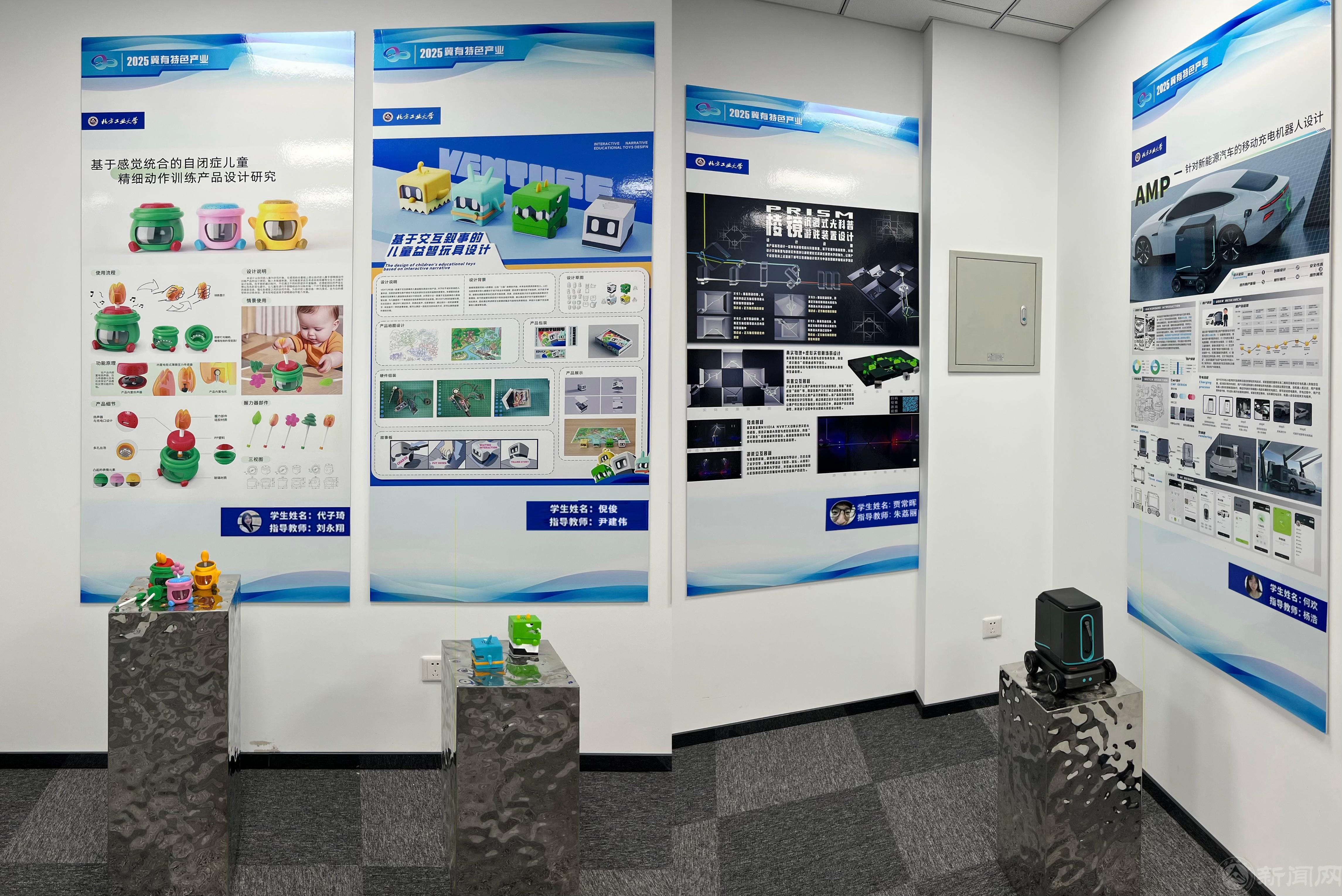 由永利官网工业设计专业选送的2份本科毕业设计作品、3份研究生毕业设计作品参加了展览。各毕业设计从充电机器人等选题入手,定义使用人群、应用场景,产出了包括外观、结构、使用方式、服务系统等一系列解决方案。通过静态展板、扫码视频和实物模型等方式展示,各作品表达出学生对新质生产力的深刻理解、新技术新消费模式的敏锐洞察和包容性可持续社会的不懈追求,获得观众的一致认可。