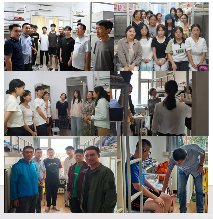 新生入住后,学院领导、硕士研究生导师及各班班导师分组走访所有新生寝室,细致询问生活适应情况,并对学生提出的各类问题予以现场回应和解决。亲切的交流缓解了新生的陌生与焦虑,也让理学院的关怀落于实处。