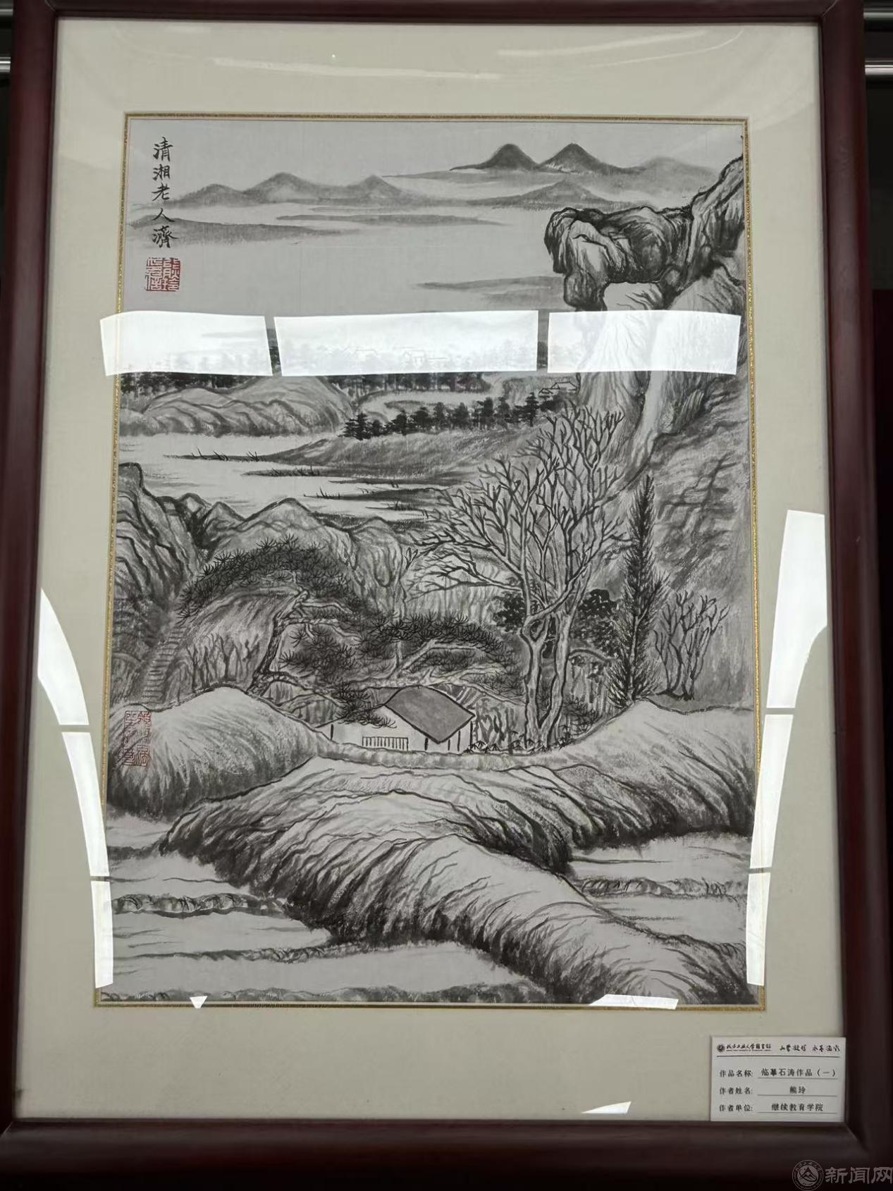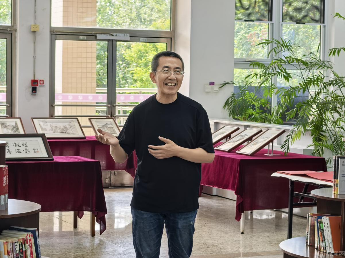 9月10日,在第41个教师节来临之际,由图书馆主办,校工会、校教职工美术协会、艺术馆协办的“山骨凝晖·水墨溢彩——教职工美术协会临摹大家山水画习作展”在图书馆大厅开幕。