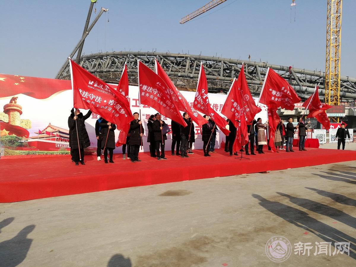 全国工会2018年“宪法宣传周”暨北京市总工会“尊法守法·携手筑梦”服务农民工法治宣传行动启动仪式于11月30日下午在北京奥体中心国家速滑馆建设场地举行。永利官网工会常务副主席张玉林参加启动仪式,并作为参加2018年法治宣传行动的12所高校之一接受上级组织授旗。