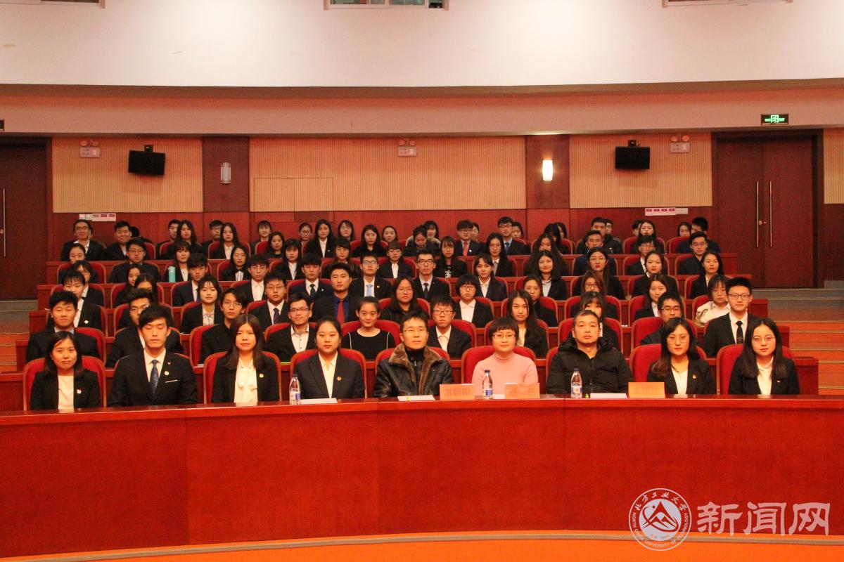 12月11日下午,经济管理学院学生代表大会在文化会堂隆重召开。学院党委书记谢朝阳、党委副书记赵洁,辅导员吴芳、朱洪江以及各年级学生代表参加了会议。