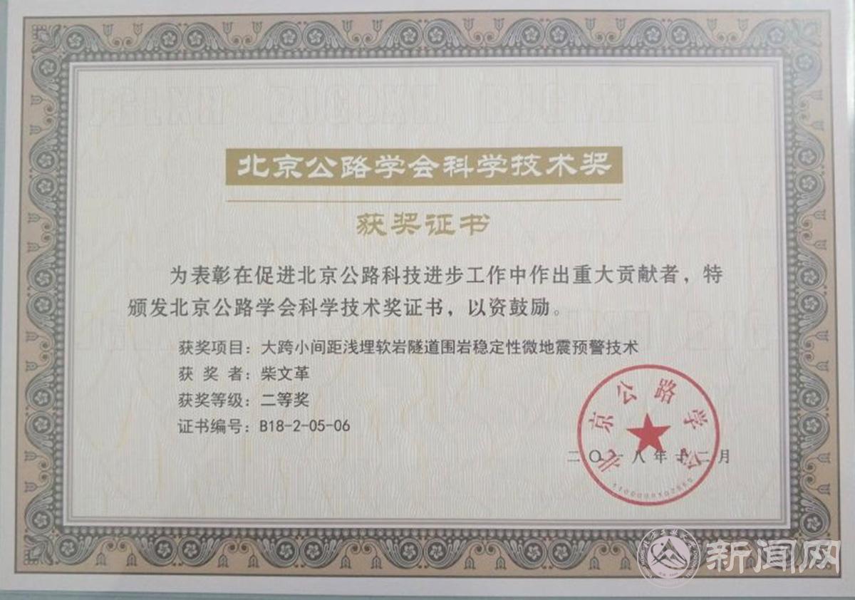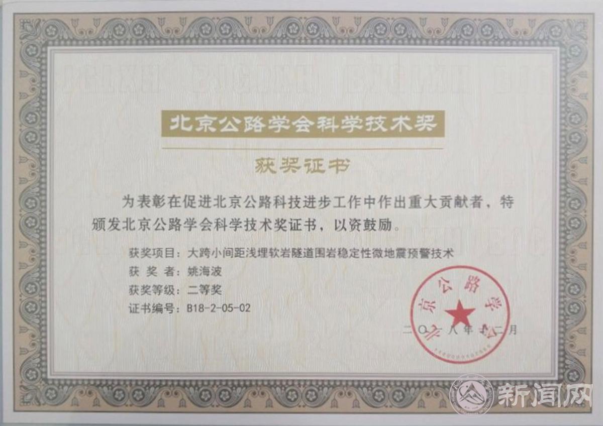 日前,从北京公路学会获悉,永利官网土木工程学院姚海波教授带领的科研团队获得2018年北京公路学会科学技术奖二等奖。