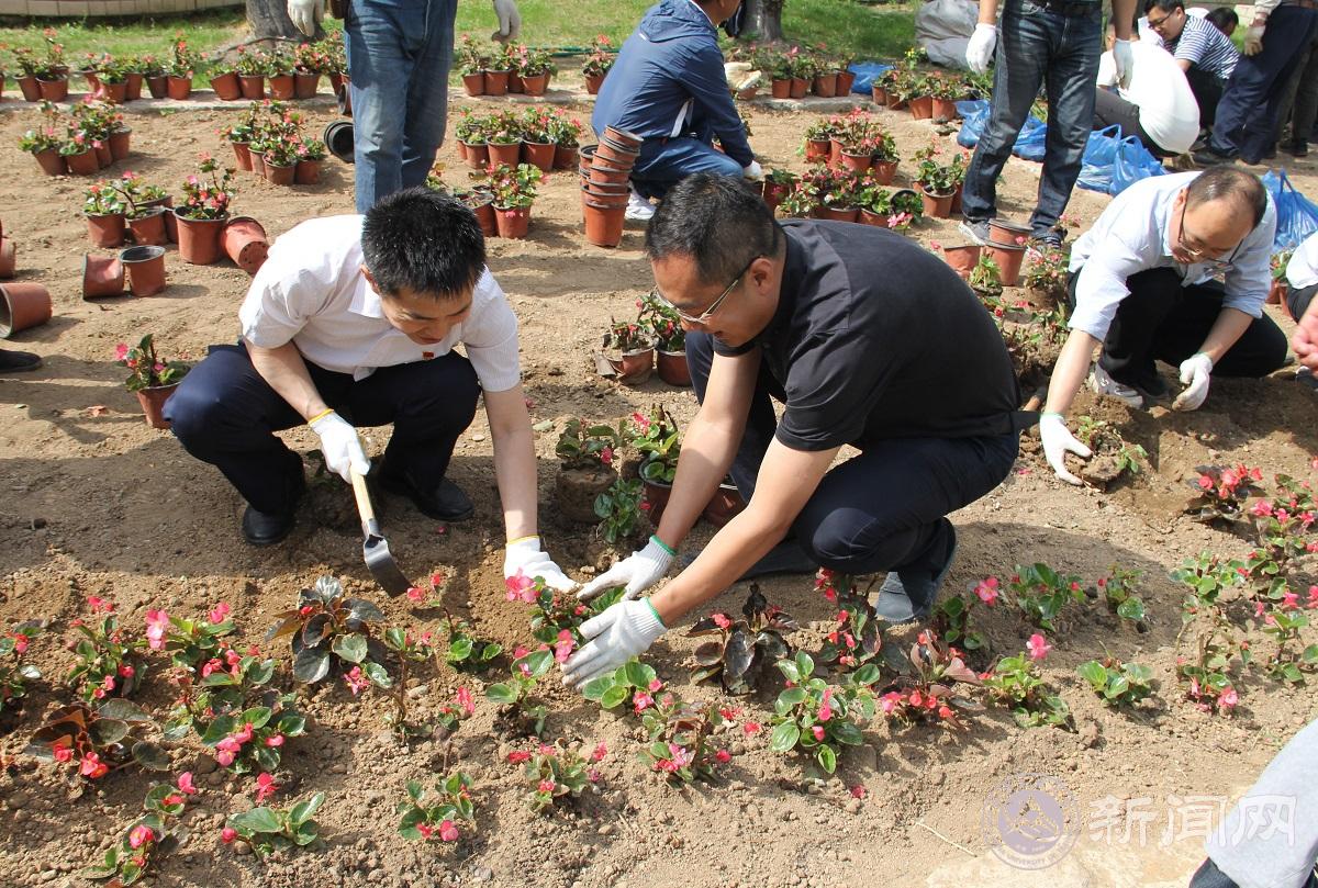 胡应平副校长同大家一起开沟栽种,各个党支部干劲十足,有条不紊的种植花卉,形成一派紧张而忙碌的劳动景象。经过一个多小时的劳动,共栽种四季海棠700盆,红宝石萱草1500盆,紫叶酢浆草1400盆。