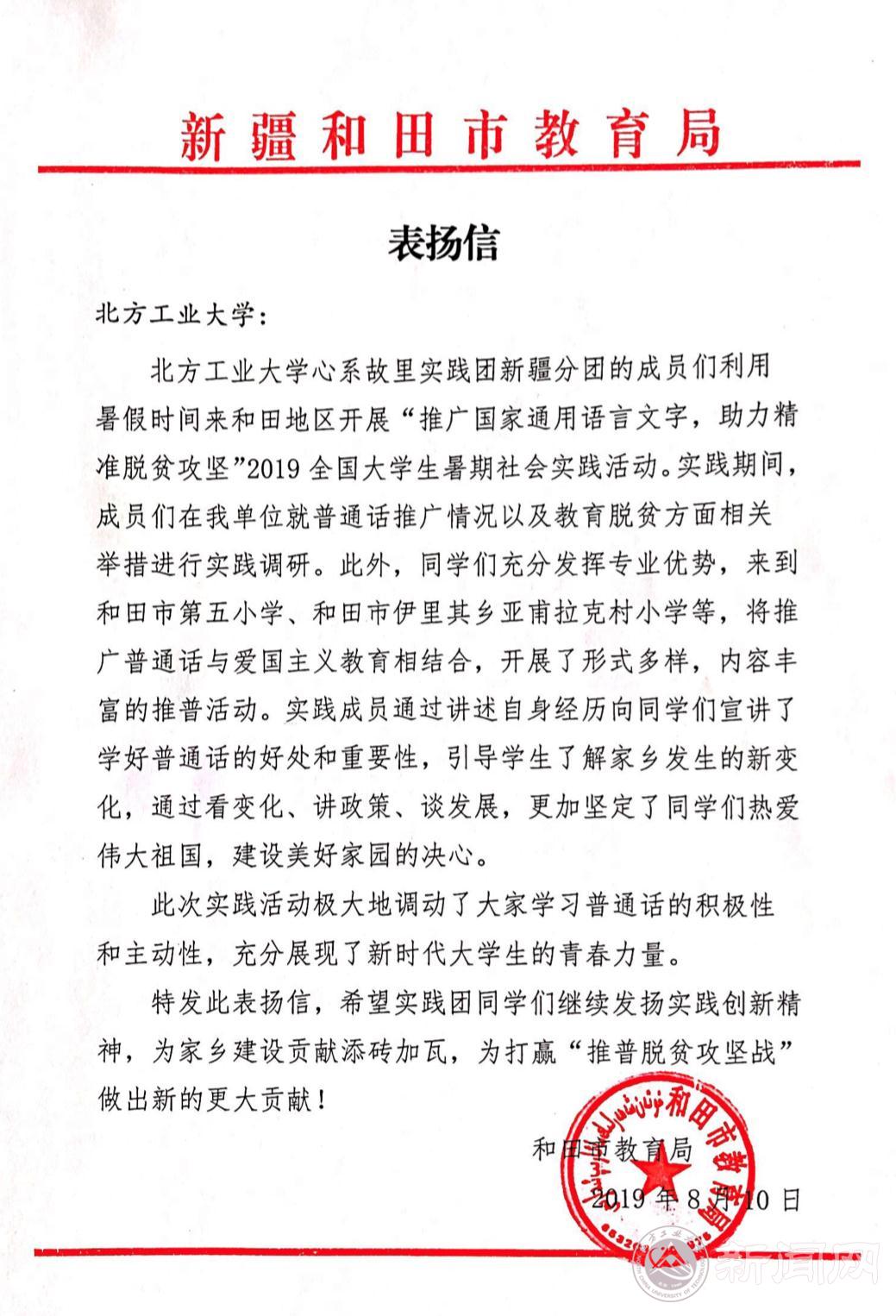 新疆分团受到和田市教育局表扬