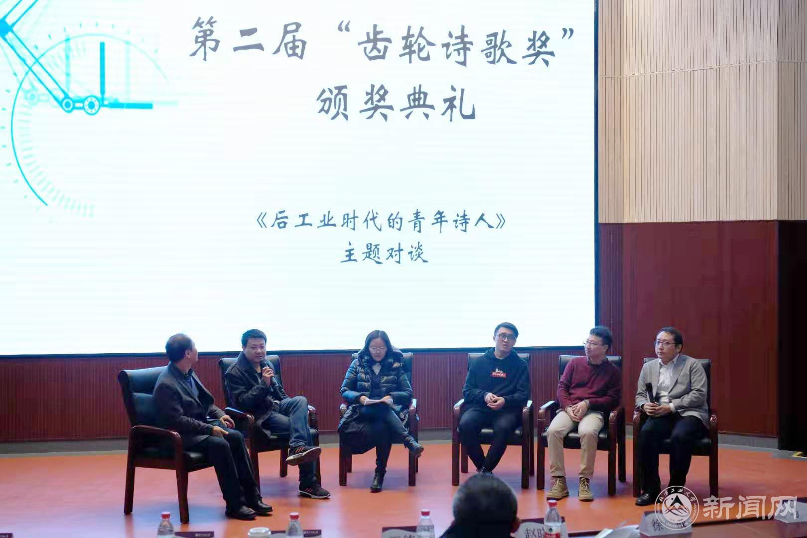 第二届齿轮诗歌节系列活动共分为三个部分:齿轮诗歌奖颁奖典礼、“青年诗人研讨会”和著名诗人、中国人民大学王家新教授的诗歌讲座。“青年诗人研讨会”由中文系赵晓辉老师主持,围绕参赛作品及“自在与物事”、“女性与生活”、“语言的剧场”、“时空的想象”为主题进行了研讨。王家新教授的讲座以“策兰与语言的异乡”为主题,由中文系冯雷老师主持。