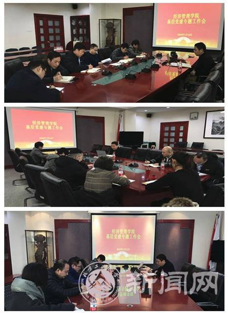 经济管理学院于1月10日和1月13日分别面向教工党支部、研究生学生党支部、本科生学生党支部召开了3场基层党建工作专题会。学院党委书记王伟宾、党委副书记赵洁以及各党支部书记参加了专题会。