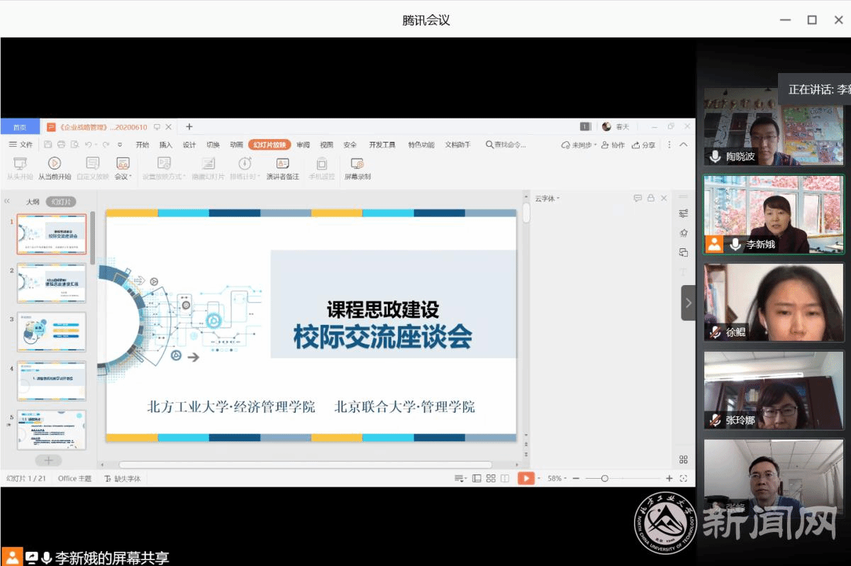 6月10日下午,为进一步推进课程思政建设工作,经管学院与北京联合大学管理学院开展了课程思政建设线上交流座谈。在学院党政联席会安排部署下,陶晓波、郝凯、罗文豪三位教师作为代表,参加了此次线上交流座谈。
