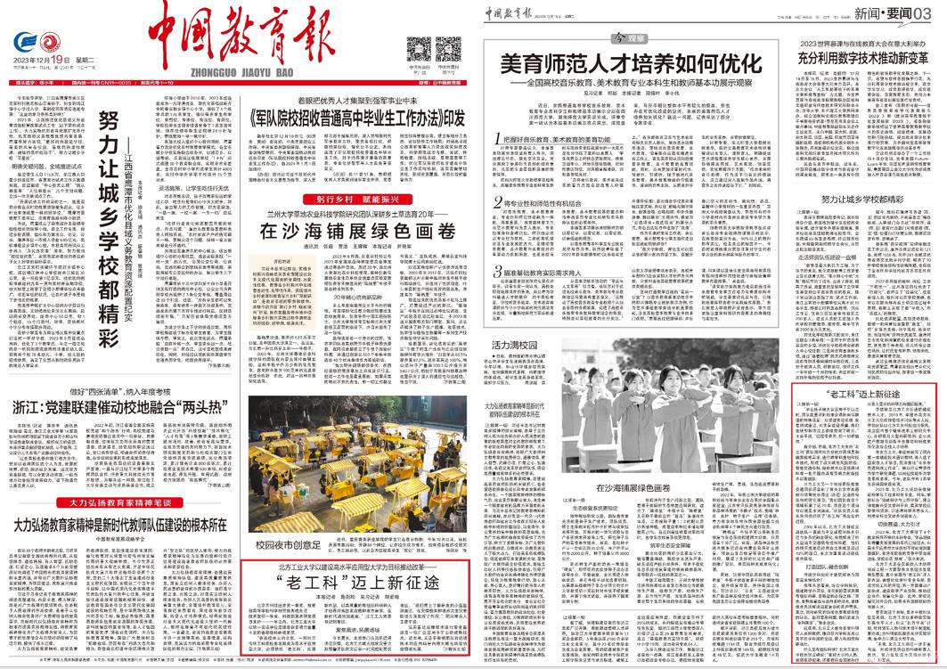 12月19日,《中国教育报》在头版和第三版以《“老工科”迈上新征途——304永利集团官网入口以建设高水平应用型大学为目标推动改革》为题,报道永利官网落实分类发展要求,依托“老工科”,拓展新内涵,聚焦国家战略和地方需求,实现转型发展,在新时代跑出“加速度”的经验做法。