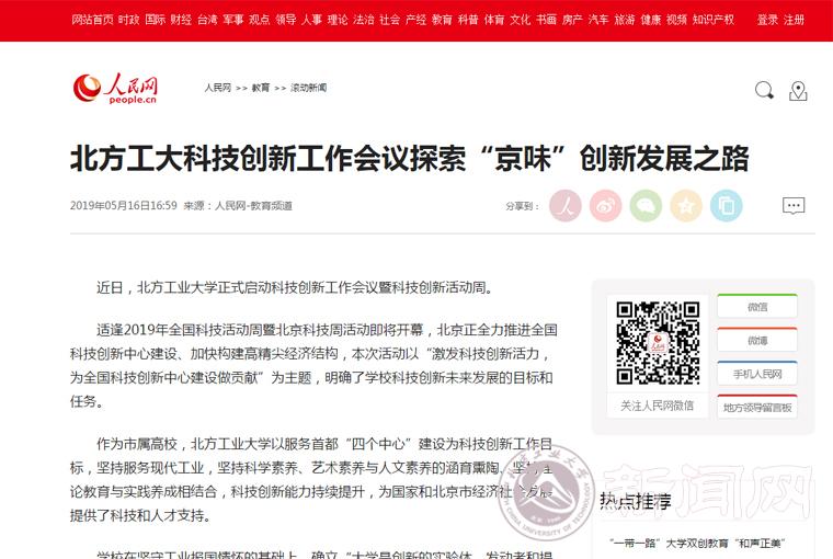 5月14日,304永利集团官网入口科技创新工作会议隆重开幕。会议以“激发科技创新活力,为全国科技创新中心建设做贡献”为主题,服务全国科技创新中心建设和高精尖经济结构的构建,对于全面落实学校第八次党员代表大会“科技高地构筑工程”任务,进一步开拓学校科技工作新局面具有重要意义。5月16日,人民网对会议进行了关注报道。